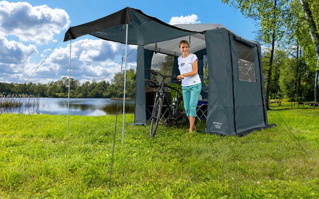 Multifunktional einsetzbares Premium-Universalzelt mit Lufttechnologie und komfortabler Stehhöhe. Das Positano-L 4 Season bietet viel Platz zum Aufbewahren von Fahrrädern, Campingutensilien, Spielsachen, Gartengeräten uvm. Dank Luftgestänge lässt es sich schnell und unkompliziert aufbauen. Das wetterfeste PVC Material inkl. UV-Schutz-Beschichtung ermöglicht einen ganzjährigen Einsatz. Drei Fenster (halb/ganz hochrollbar) inkl. Moskitogaze sorgen für optimale Ventilation. Zwei Eingänge (hochrollbar) ermöglichen einen leichten Zugang. Zum optimalen Schutz lässt sich das Universalzelt komplett blickdicht verschließen.