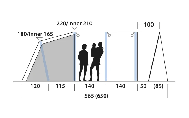 - Hinterlüftungssystem für eine optimale Durchlüftung – sowohl bei offenem als auch geschlossenem Zelt