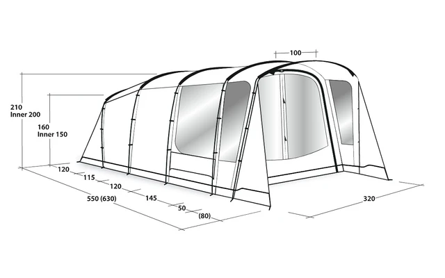 • Strapazierfähiger, wasserdichter, eingenähter Zeltboden Überzelt und Innenzelt mit Kabeldurchführungen